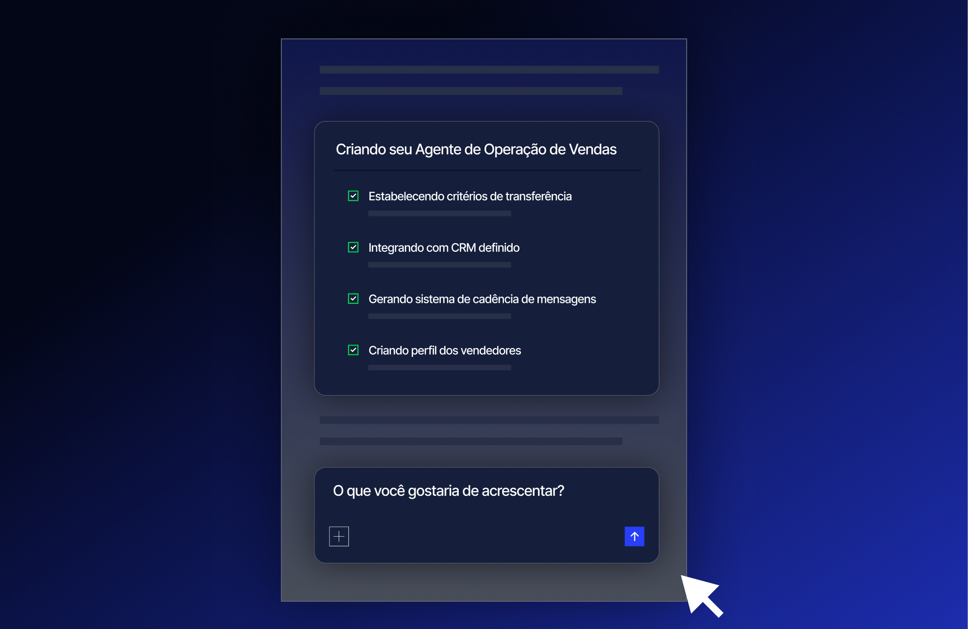 Crie, edite e publique seu agente em minutos, sem precisar de programador.